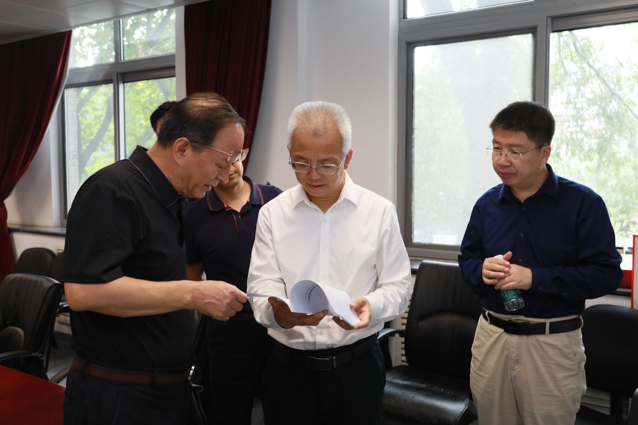 强世功校长听取了庞宗然教授的介绍,详细询问大家的教学科研进展、学院招生情况、学院发展方向,对教师们长期以来在人才培养、学科建设等方面的辛勤付出和所得成果给予充分肯定。